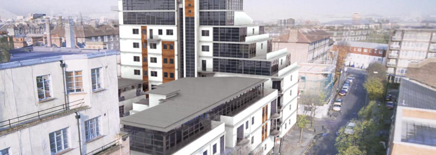 A new development of 91 residential Units and 274 square metres of employment space, for Cadenza Estates Ltd, on the site of a dilapidated former Royal Mail vehicle servicing depot.