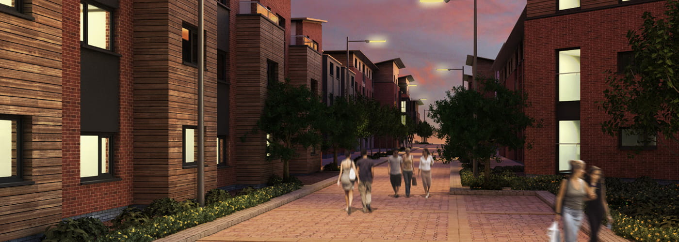 Carter Jonas’s proposals will transform the former Sun Chemical factory site into a residential-led mixed-use redevelopment. The 2 hectare area will accommodate 212 residential homes; a 90 bed care home; crèche and small offices set around open amenity spaces and a pocket park.