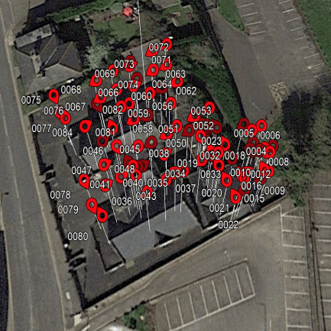 The Measured Survey team proposed the use of an Unmanned Aerial Vehicle (UAV) to carry out the survey. The UAV offers a number of advantages as it can be mobilised quickly, can access areas not visible from the ground and allows rapid data collection.