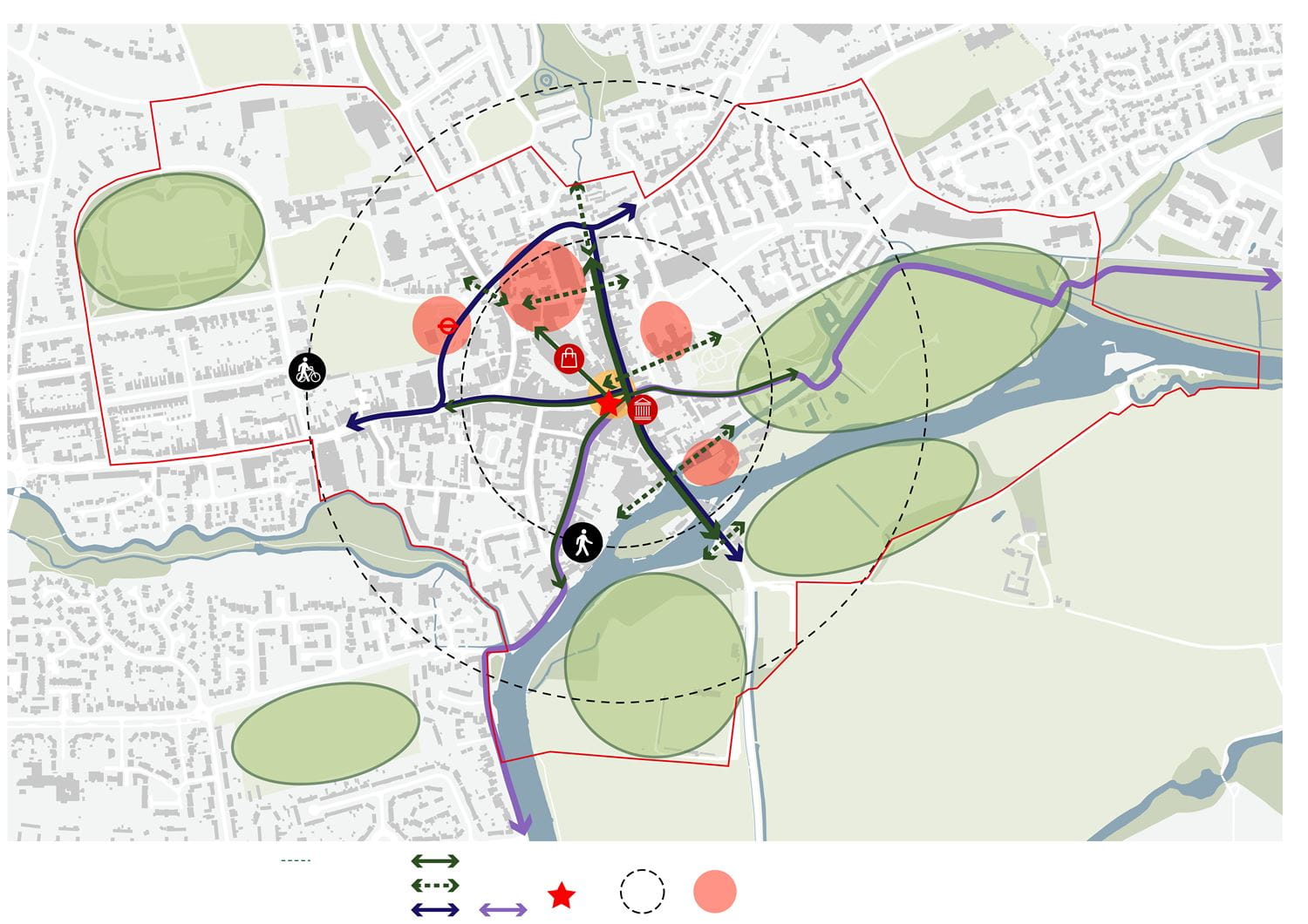 A series of objectives, together with a Vision, were set out to articulate the main drivers for change. Regeneration opportunities were developed involving transport, mobility and the public realm, culture and recreation, together with proposals for the future redevelopment, or adaptive reuse, of key sites. Addressing the challenges of climate change is a fundamental part of the objectives, Vision and approach to regeneration opportunities.