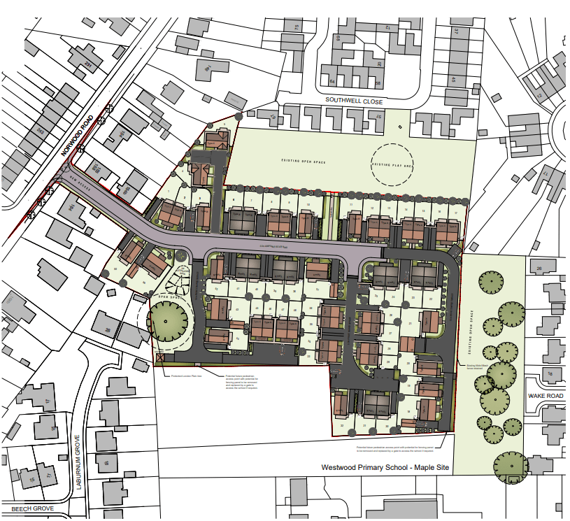 The circa 1.66 hectare site, located to the north of Maple Grove Primary School and off Norwood Road, will accommodate 50 two, three and four bedroom homes, set with a well landscaped setting.