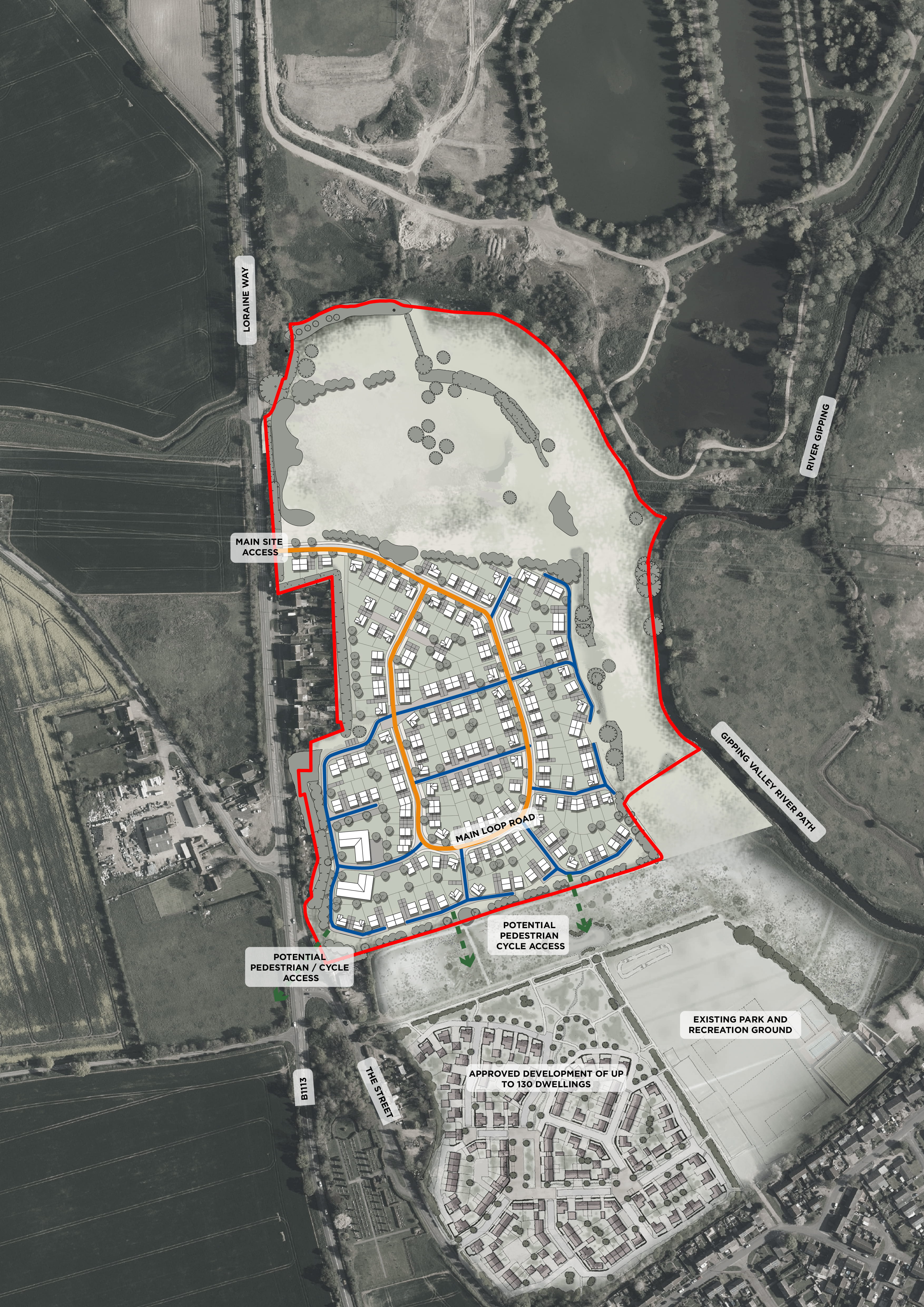 The site falls into two parts, the upper part is arable land partially surrounded by hedgerows, and the lower area is wetland within the river floodplain and adjacent to the newly created Suffolk Water Park.Our experts developed a masterplan which maximised the site’s assets, while playing down constraints such as the high voltage power lines which crossed the area. An outline planning application was submitted for 225 homes, together with an extensive network of public open space. The application was accompanied by a public exhibition and consultation exercise in the village.