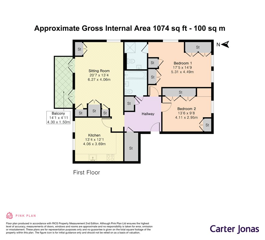 1,074 (99.8 Sq M) approx.