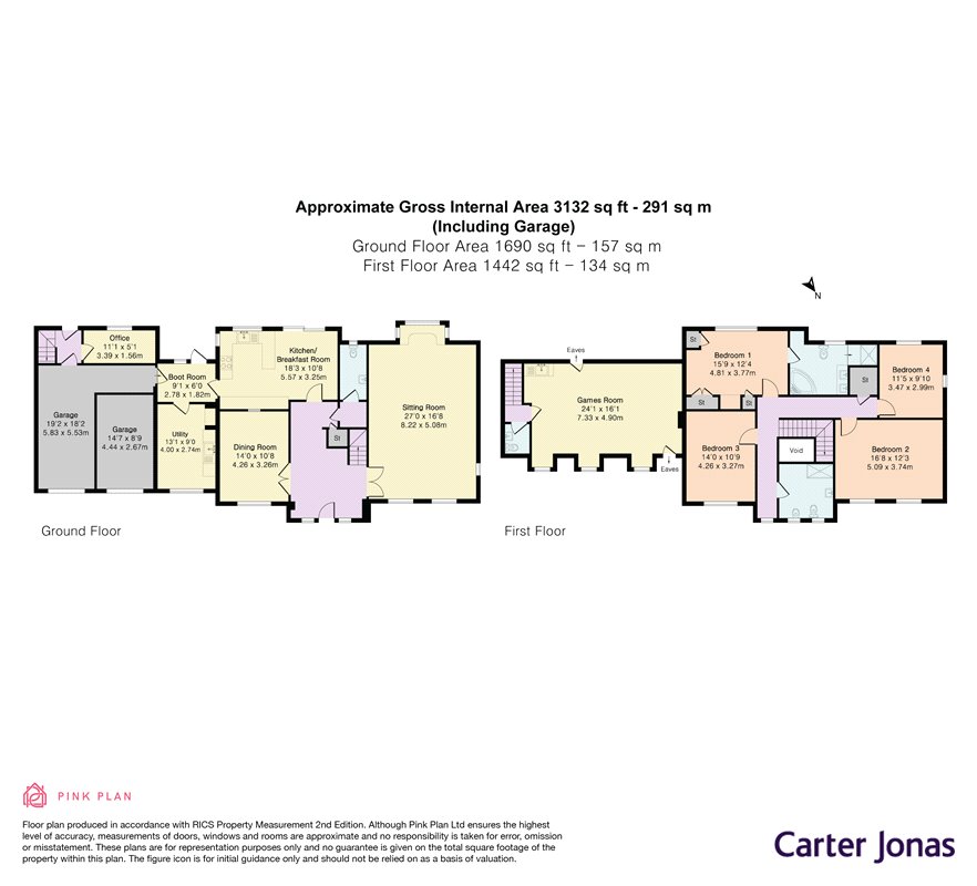 The first floor has a principal bedroom with full ensuite, three further double bedrooms and a family bathroom.