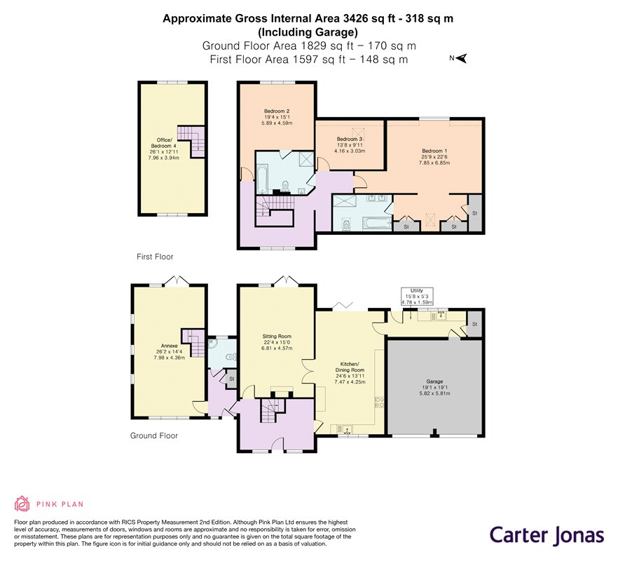 The accommodation includes spacious reception areas, and three double bedrooms including a luxurious principal suite, along with a versatile two-storey annexe that can be seamlessly integrated into the main house or used independently as a self-contained living space or home office.