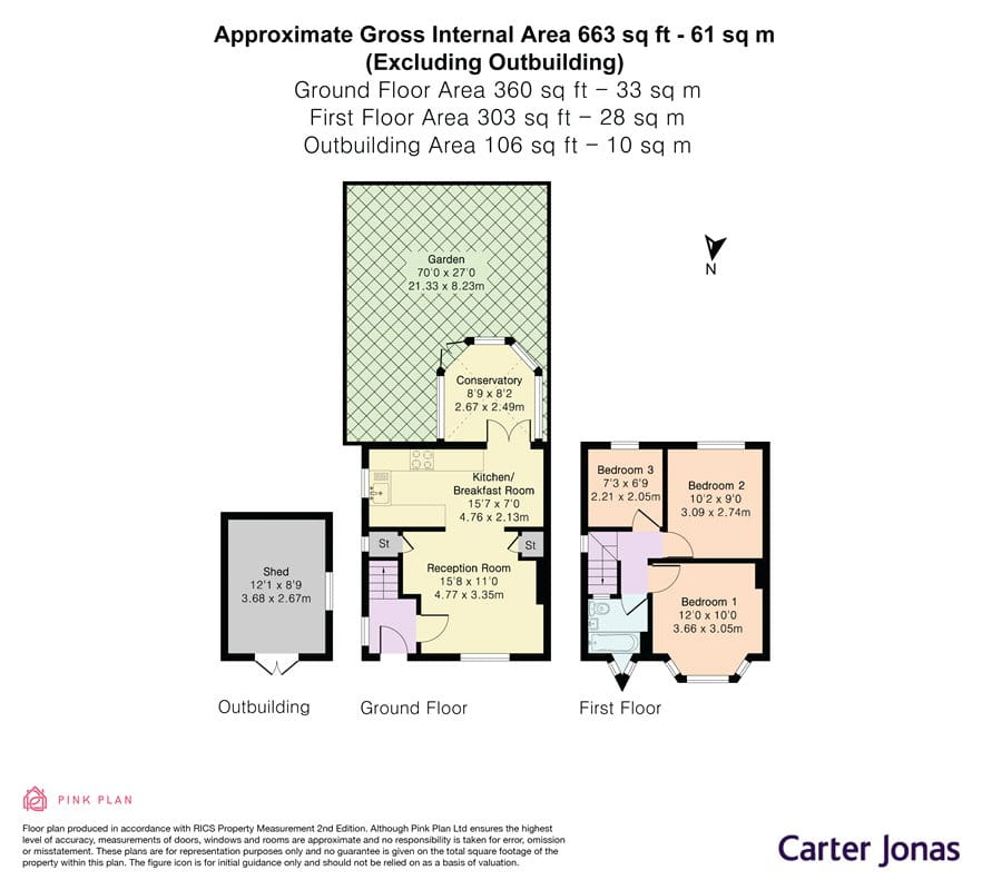 Upstairs, the property provides three bedrooms and a family bathroom, all arranged around the first floor landing.