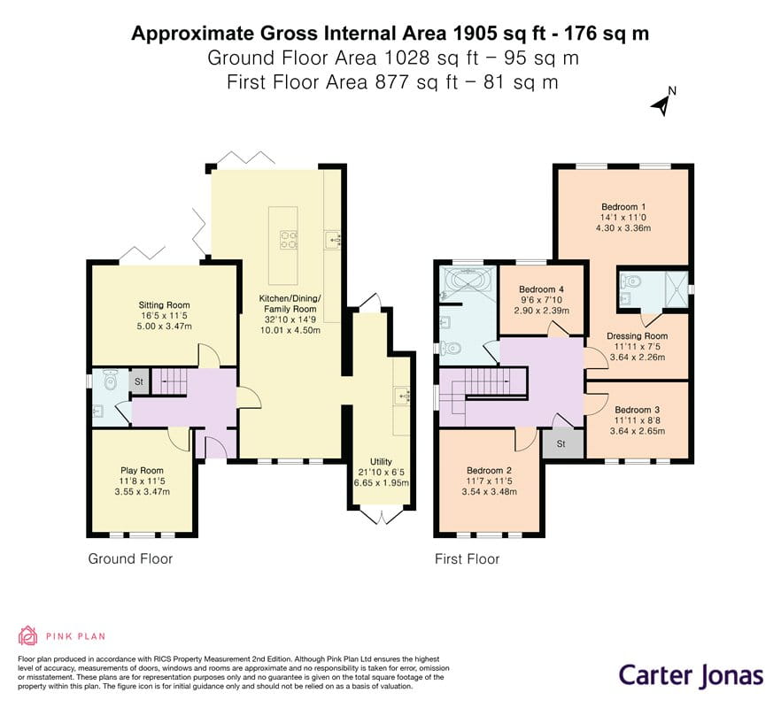 Upstairs, the principal bedroom enjoys views over the rear garden and features a dressing area and en-suite shower room. Three further bedrooms and a contemporary family bathroom complete the upper floor.