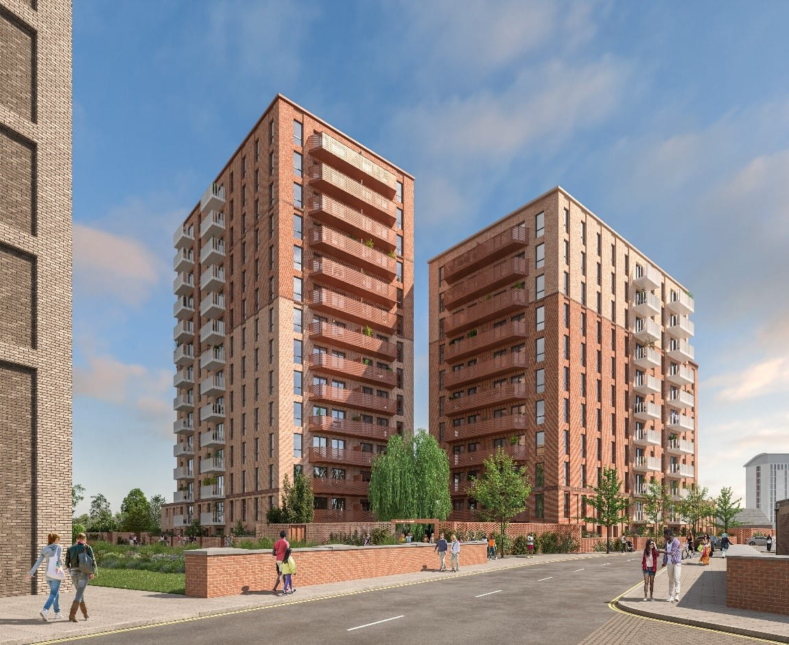 A planning application was prepared and submitted a planning application for 176 residential units, of which 84 were affordable, split across two blocks varying from 11 storeys to 14 storeys. The proposals also include a total of 2,929sqm of amenity space and public realm improvements at the site boundaries.